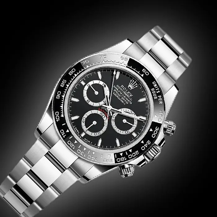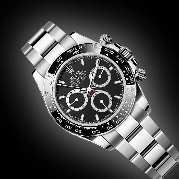 The Rolex Daytona “Reverse Panda” reference 126500LN is one of those watches that stops you in your tracks. It is one of the most sought-after chronographs in the world. The Daytona “Reverse Panda” pairs a black dial with crisp white subdials, giving it that unmistakable contrast collectors love. The 40mm Oystersteel case feels solid and balanced on the wrist, while the black Cerachrom bezel with its engraved tachymetric scale gives it that unmistakable racing pedigree.